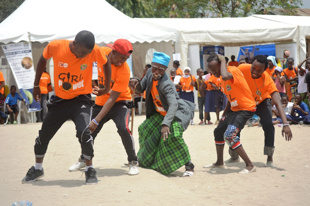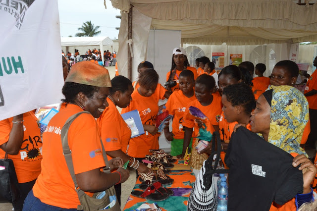Mgeni rasmi katika maadhimisho ya siku ya mtoto wa Kike Duniani Mkurugenzi wa watoto kutoka Wizara ya Jamii, Jinsia na Watoto Bi. Margaret Sawe Mussai pamoja na Mwakilishi Mkazi wa Shirika la Umoja wa Mataifa linaloshughulikia idadi ya watu duniani (UNFPA) Bi. Natalia Kanem wakipata maeleozo na kukagua shughuli mbalimbali zinazoifanywa na vijana wa Restless wakati wa maadhimisho ya siku ya mtoto wa kike Duniani.