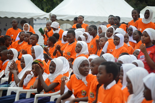Watoto wakiwa na hali ya furaha wakati wa maadhimisho hayo yaliyofanyika katika shule ya msingi Tandale.
