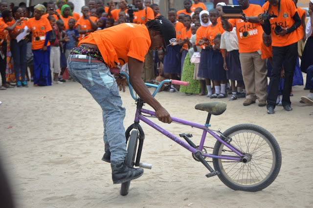 Watoto wa kike wakionesha vipaji katika mpira wa miguu wakati wa siku ya mtoto wa kike Duniani.