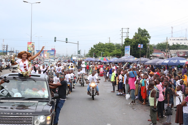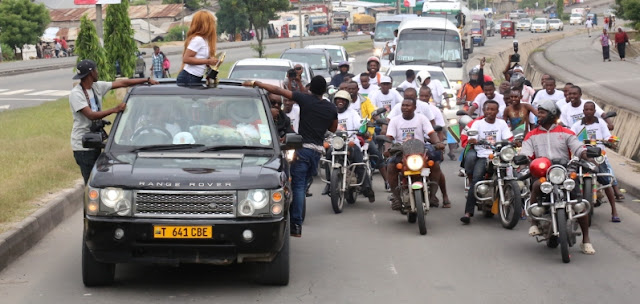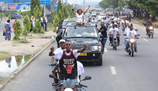 Msafara wa Lulu ukiondoka Uwanja wa Ndege kuelekea Escape one ambapo baadhi ya wapenzi na mashabiki waliweza kumpongeza kwa ushindi ulioipatia Taifa la Tanzania Sifa katika tasnia ya Filamu