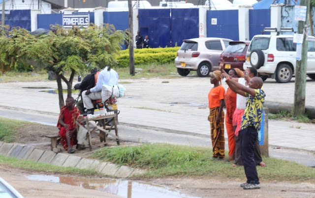 Akiwapungia mkono watanzania waliokuwa katika kituo cha daladala cha Buguruni