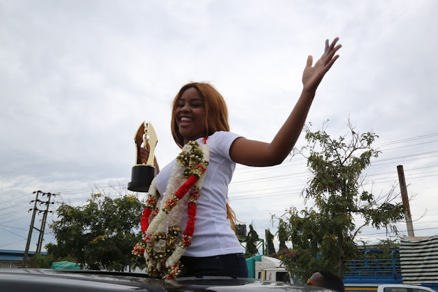 Msanii Eliabeth Michael Lulu akiwasili kutokea nchini Nigeria akiwa na Tunzo yake mkononi ambayo alishinda nchini Nigeria katika Mashindano ya Africa Magic Viewers Choice Awards 2016 katika Kipengele cha Filamu Bora ya Afrika Mashariki kupitia filamu yake ya Mapenzi ya Mungu ambayo ipo chini ya Kampuni ya Mahiri ya utengenezaji na usambazaji wa Filamu ya Proin Promotions Ltd