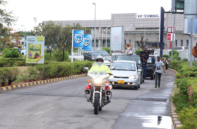 Akipelekwa katika gari maalumu lililokuja kumpokea katika uwanja wa ndege wa Mwl Nyerere hapo Jana