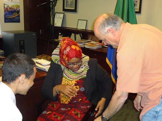 Hon. Saada Mkuya Salum, Minister for Finance (centre) and Tanzania’s Ambassador to the United States Hon Liberata Mulamula (right) with CNN International’s Producer Brian MacBride at the Tanzania embassy in the US in Washington DC