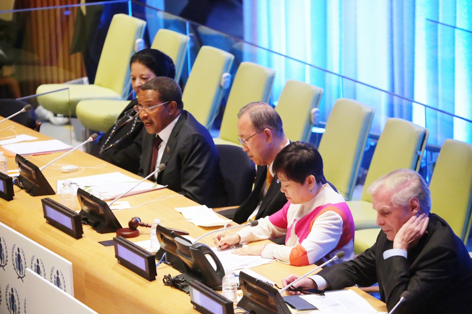 President Jakaya Mrisho Kikwete speaks during the “Every Woman, Every Child High Level Event” at the Trusteeship Council Chamber of the United Nations in New York. To his left is the UN Secretary General Mr. Ban ki Moon.
