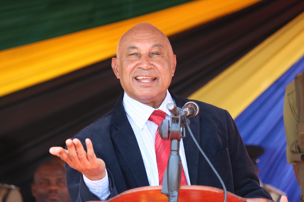 Kamanda wa Polisi Mkoa wa Kilimanjaro,Wilbroad Mutafungwa akimuoneesha Mkuu wa Mkoa wa Kilimanjaro,Said Mecky Sadiq baadhi ya silaha zilizokamatwa hivi karibuni zikidaiwa kutumika katika vitendo vya uharifu.