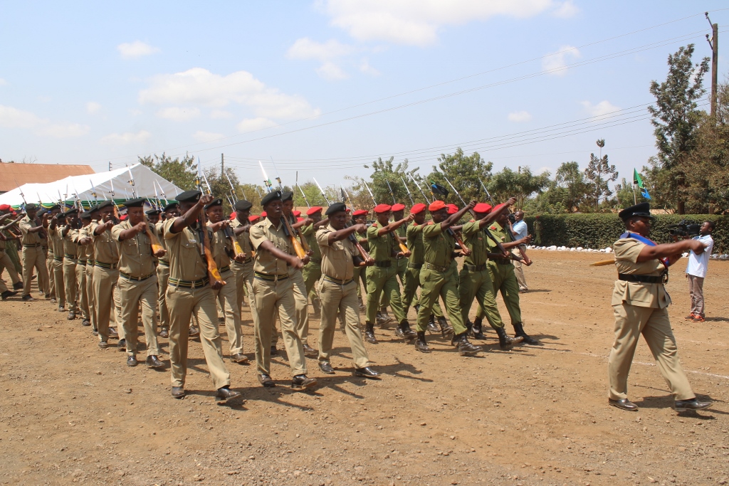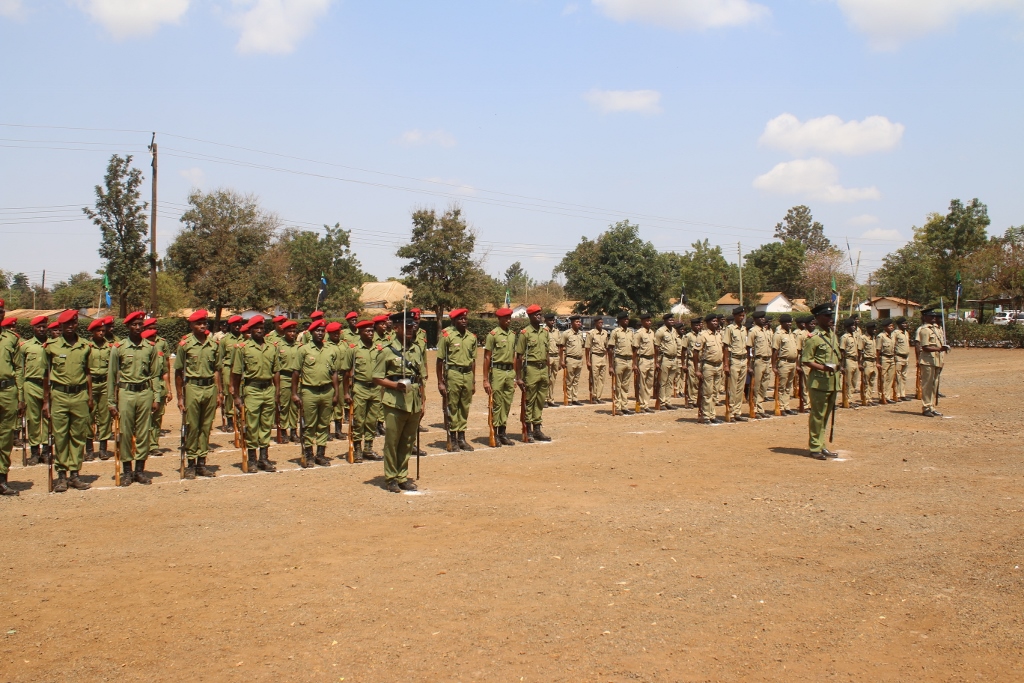 Baadhi ya askari waliotunukuwa zawadi kwa utendaji kazi mzuri wakisonga mbele kwa ajili ya kutunukiwa zawadi.