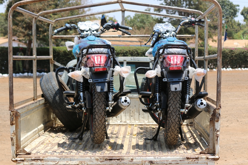 Pikipiki mbili aina ya Fekon zilizotolewa na Mkurugenzi wa Kampuni ya Utalii ya Asante Tours ,Cuthbert Swai kusaidia jeshi la Polisi katika kutekeleza majukumu yake ya kila siku.