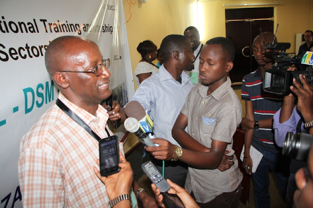Mkurugenzi wa Maendeleo wa Don Bosco toka Ubeligiji, Filip Lammens (kushoto), akizungumza na waandishi wa habari katika Mkutano wa kujadili Uwezeshaji kwa vijana ulioandaliwa na Don Bosco Kanda ya Afrika Dar es Salaam leo asubuhi.