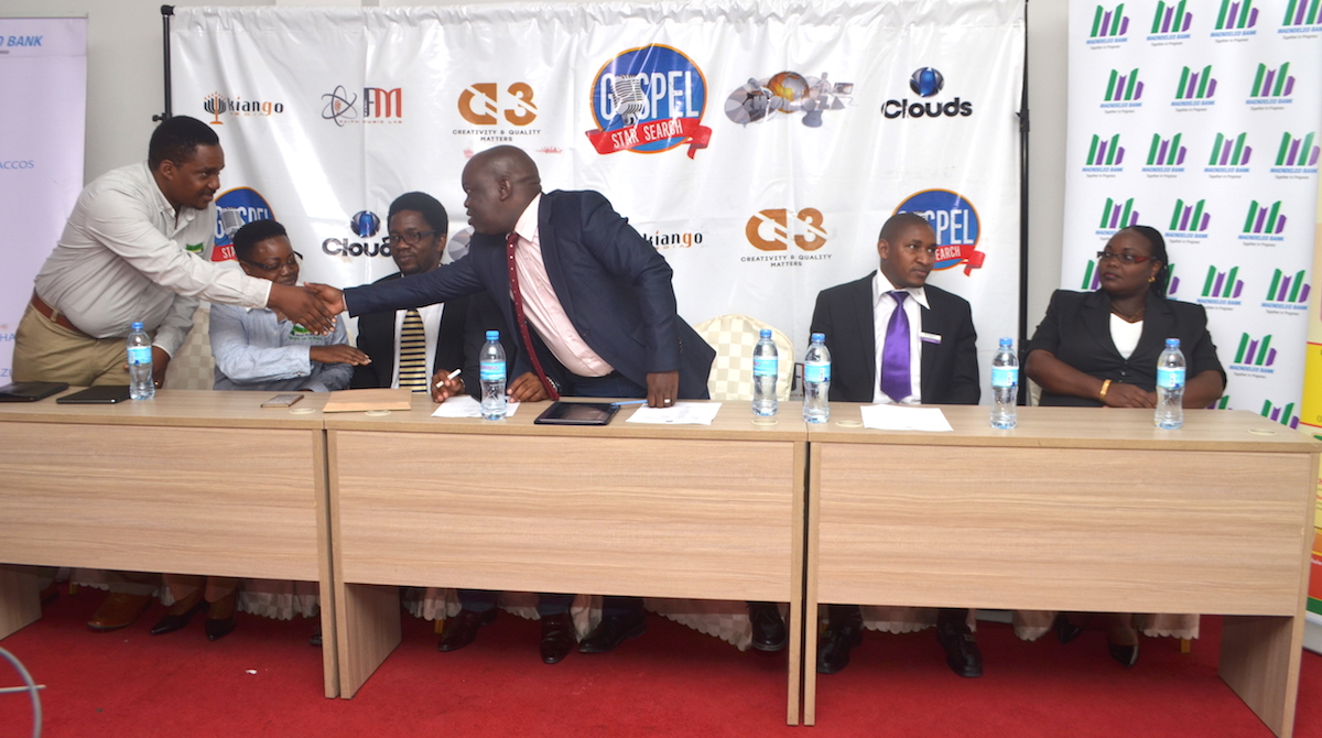 Ndugu waandishi wa habari tunashukuru sana kwa kuitikia wito wetu siu ya leo, katika project hii kubwa inayoendelea ya Gospel star search. Tulikwisha kuanza toka na tumefanikiwa kwa kiasi kikubwa mpaka sasa lakini lengo kuu hasa la uwepo wetu hapa siku ya leo ni kuwajuza juu ya uwepo na kutiliana saini na wadhamini wetu ambao wameona ni vyema na tumekubaliana kufanya kazi pamoja katika project hii ya Gospel star search. Nitamkaribisha mwenzangu yeye atasema zaidi kuhusu GSS na hatua tuliofikia mpaka sasa na kuwatambulisha wadhamini wetu.