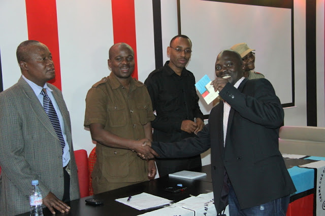 Kamanda Ndibalema akipokea kadi yake ya uanachama