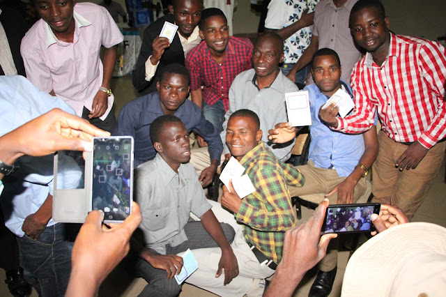 Hapa ni wanafunzi hao wakiwa na furaha baada ya kukabidhiwa kadi.