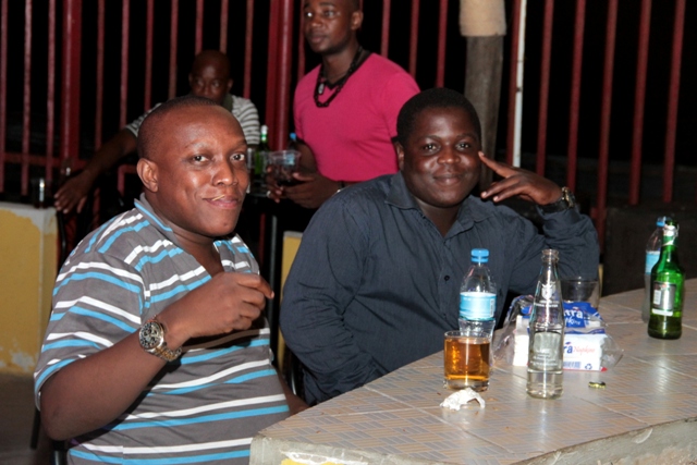 Mmoja wa watangazaji wa kipindi cha Power Breakfast, Paul James a.k.a PJ akifurahia jambo na Meneja vipindi wa clouds FM, Sebastian Maganga usiku huu ndani ya kiota cha maraha cha Escape 2.