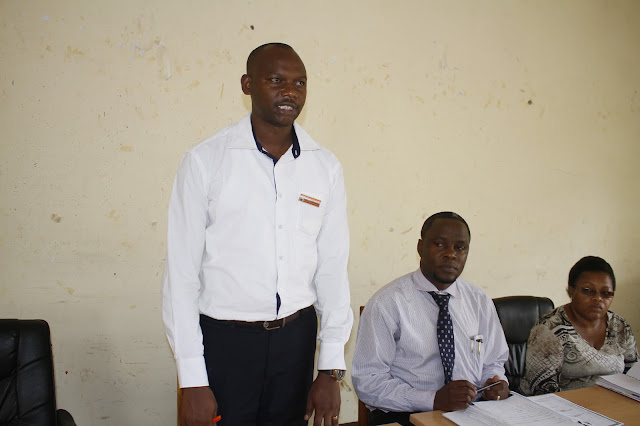Mkuu wa wilaya ya Hai, Gelasius Byakanwa akizungumza na watumishi wa Halmashauri ya wilaya ya Hai kuhusu ubadhilifu uliofanyika wakati wa zoezi la utengenezaji wa madawati. Kushoto ni Mkurugenzi wa Halmashauri hiyo Yahana Sintoo.