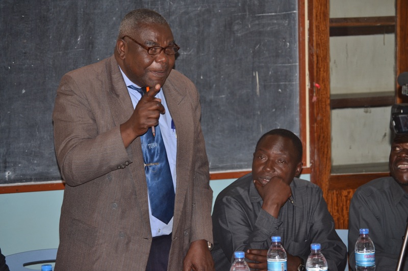 Mwenyekiti wa Tuiko Mkoaa wa Mbeya Daudi Mpolya akizungumza na wajumbe wa mkutano huoambao umefanyika katika ukumbi wa chuo cha wafanyakazi Otu jijini Mbeya Agosti 25 mwaka huu. |