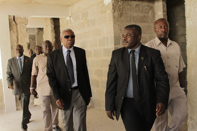 Makamu wa Rais wa Jamhuri ya Muungano wa Tanzania, Dk. Mohammed Gharib Bilal, akiongozwa na Mtendaji Mkuu wa Wakala wa Majengo Tanzania (TBA) Elius Mwakalinga, wakati akitembelea kukagua maendeleo ya ujenzi wa Nyumba za Makazi ya Watumishi wa Umma, zilizopo eneo la Ada Estate, jijini Dar es Salaam, wakati wa hafla ya uwekaji wa Jiwe la Msingi katika Ujenzi wa jengo hilo.