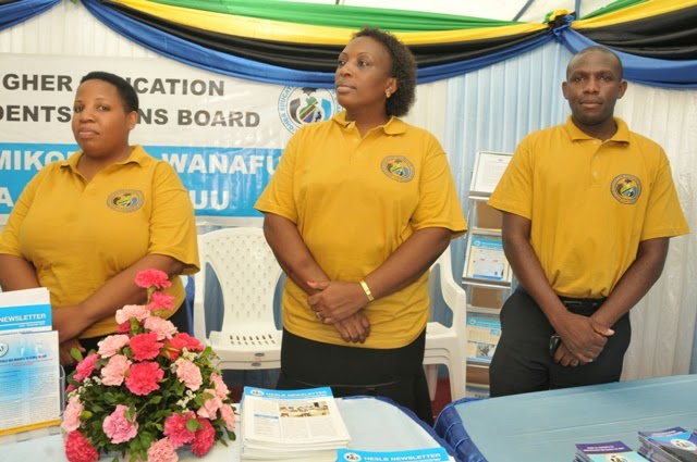 Baadhi ya watumishi wa Bodi ya Mikopo wakiwa bandani hapo kusubiri wananchi wawape maelezo ya shughuli zao na nini mtu akifanye apate mkopo.