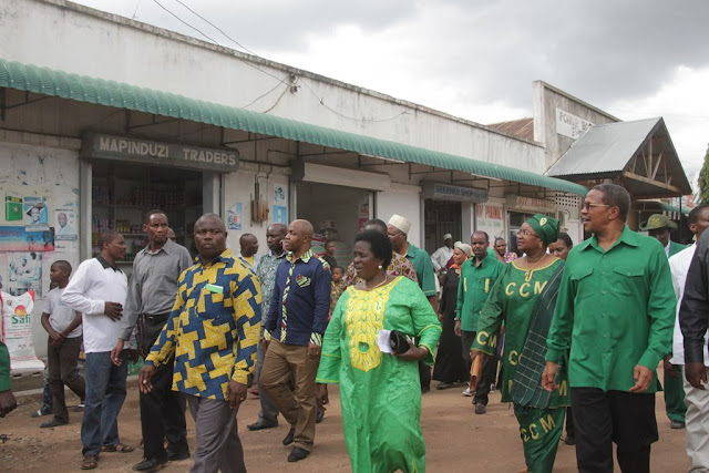 Mwenyekiti wa CCM, Rais Mstaafu Jakaya Kikwete akienda katika Ofisi ya CCM mkoa wa Singida, akiwa na Mkewe Mama Salma Kikwete, Nape na Mary Maziku