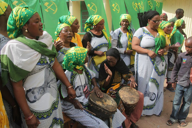 Kina mama wakitumbuiza kwa ngoma kumlaki Kikwete Ofisi ya CCM mkoa wa Singida