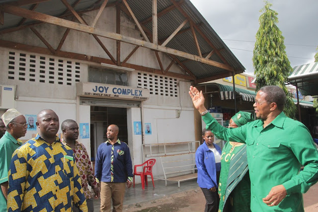 Mwenyekiti wa CCM, Rais Kikwete akionyesha jengo lililokuwa Ofisi ya TANU mkoa wa Singida miaka ya 75 akiwa katibu msaidizi wa TANU wa wilaya