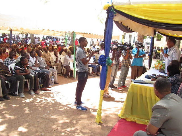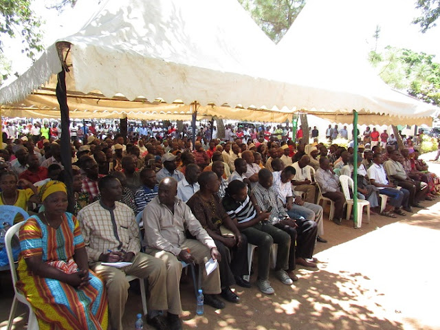 Watendaji na wananchi wa Kata ya Buhongwa wakimsikiliza waziri Lukuvi (hayupo pichani).