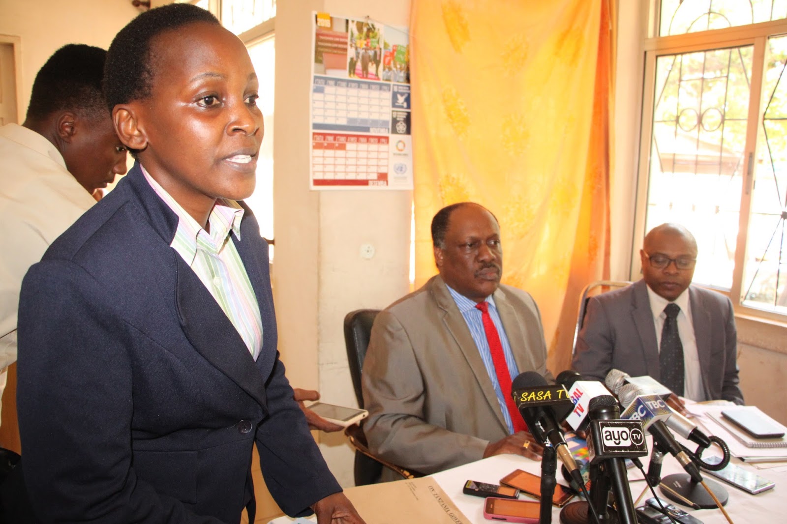 Mkuu wa Kitengo cha Mawasiliano Ofisi ya Msajili wa Vyama vya Siasa, Monica Mnanka (kushoto), akizungumza na waandishi wa habari wakati akimkaribisha Msajili wa Vyama kuzungumza na wanahabari Dar es Salaam leo asubuhi. Kulia ni Msaji Msaidizi wa Vyama vya Siasa, Sisty Nyahoza na Msajili wa Vyama, Jaji Francis Mutungi.