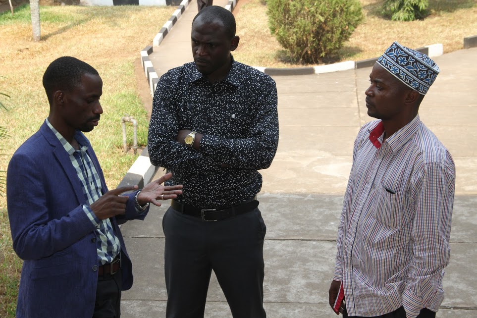 Mkurugenzi Mtendaji wa Jamii Media, Maxence Melo akibadilishana mawazo na waheshimiwa madiwani Kalumuna(katikati) ambaye ni diwani wa Bilele(CCM) na Kabaju (kulia) ambaye ni diwani wa Kashai (CHADEMA).
