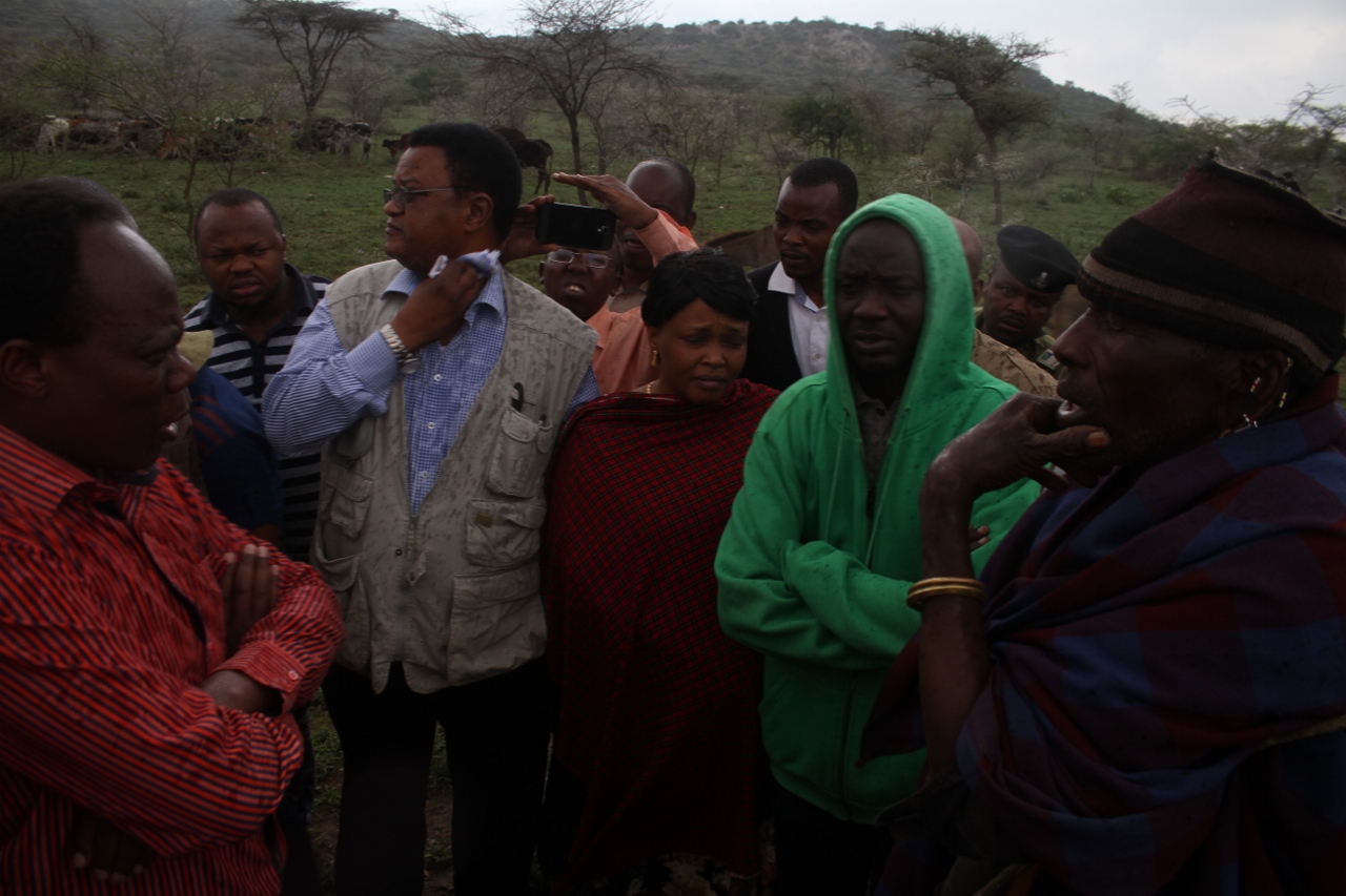 Wajumbe wa Kamati ya Kudumu ya Bunge ya Ardhi, Maliasili na Utalii wakizungumza na mmoja wa wafugaji waliokutwa wakichunga Ngombe ndani ya Pori Tengefu la Loliondo.