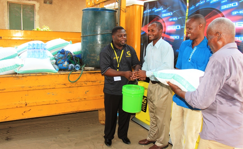 | Meneja Uhusiano wa Kampuni ya Simu Tanzania (TTCL), Nicodemus Thomas (kulia) akimkabidhi sehemu ya msaada Mlezi wa Kituo cha Kulelea Watoto Wanaoishi katika Mazingira Magumu cha Honoratha cha Temeke jijini Dar es Salaam leo kwa ajili ya Siku Kuu ya Mwaka Mpya 2016. TTCL imetoa msaada wa mifuko ya Unga, Sukari, Mchele, Maharage na Mafuta ya Kupikia kwa vituo vitatu tofauti vya watoto wanaoishi katika mazingira magumu. |