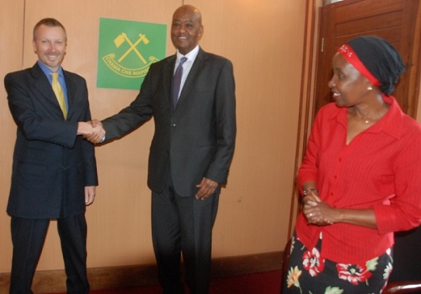 Katibu Mkuu wa CCM, Abdulrahman Kinana akimkaribisha Balozi wa Canada hapa nchini, Alexandre Leveque, Ofisi Ndogo ya Makao Makuu ya CCM, Lumumba jijini Dar es Salaam, leo, Agosti 12, 2013. Balozi huyo alipomtembelea na kuwa na mazungumzo naye. Kushoto ni Katibu wa NEC, Siasa na Uhusiano wa Kimataifa, Dk. Asha-Rose Migiro..