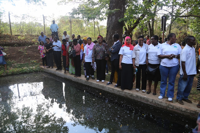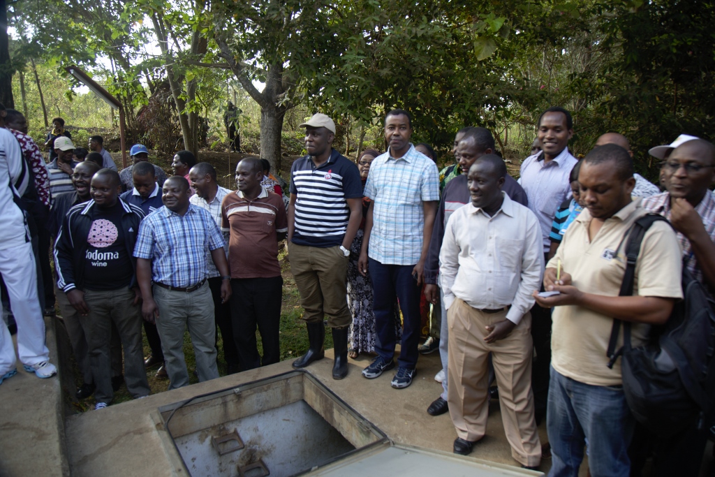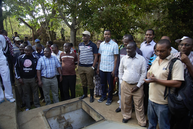 Baadhi ya watumishi wa serikali wakitizama chanzo cha maji cha Shiri njoro.