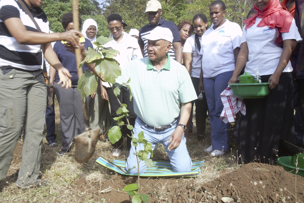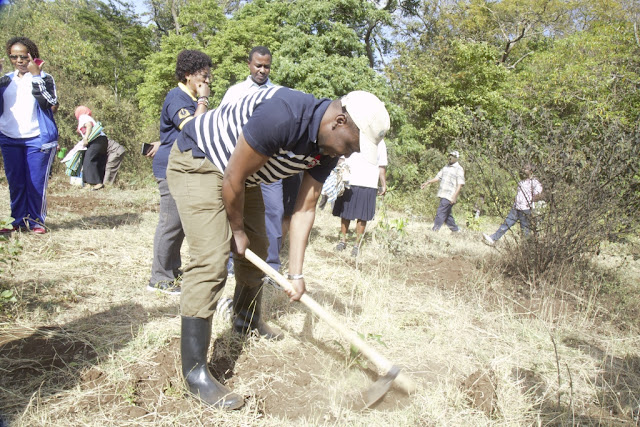 Mkuu wa wilaya ya Moshi, Kipi Warioba akiotesha mti katika eneo hilo zoezi ambali lilishirikisha watumishi wa idara mbalimbali za serikali na wafanyakazi wa Mamlaka ya Majsafi na Usafi wa Mazingira mjini Moshi (MUWSA).