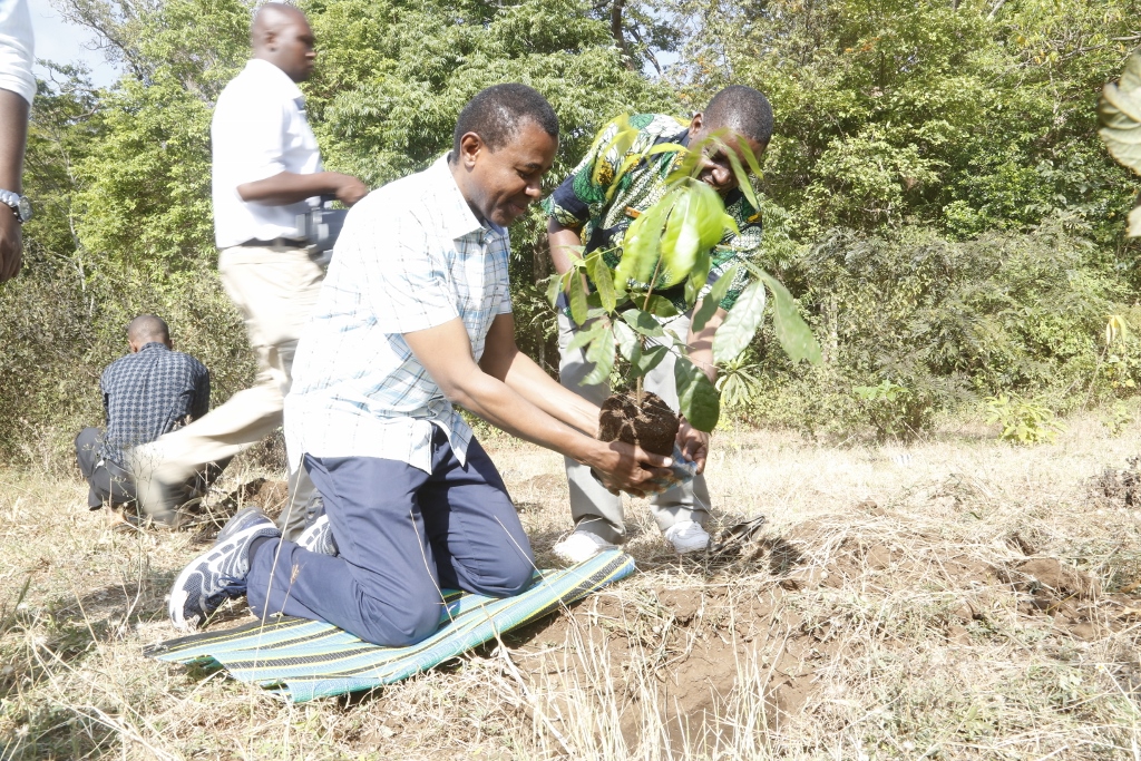 Mkuu wa wilaya ya Hai, Gelasius Byakanwa akiotesha mti katika eneo hilo.