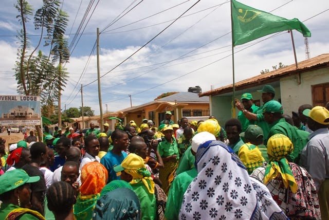 Katibu Mkuu wa CCM, Abdulrahman Kinana akifungua Shina la Vijana Wajasiriamali wa CCM la Dk. Asha-Rose Migiro, katika mtaa wa Mfaranyaki mjini Songea leo