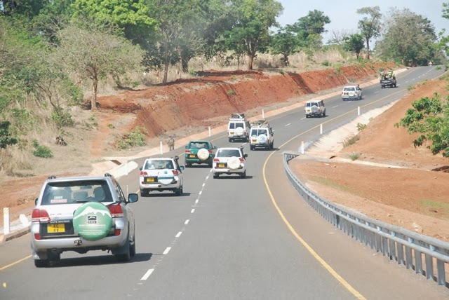 Msafara wa Katibu Mkuu wa CCM, Abdulrahman Kinana ukipita leo katika ‘mkeka’ wa barabara, ulipokuwa ukitoka Namtumbo kwenda Songea, Kinana akiwa katika ziara mkoani Ruvuma, kukagua utelekezaji wa ilani ya uchaguzi ya CCM, kusikiliza kero za wananchi na kushirikiana nao kupata njia za kuzitatua, baba hiyo ni miongozi mwa barabara kadhaa zilizojengwa katika maeneo mbalimbali nchini ikiwa ni utekelezaji wa ilani ya CCM na kuwaondolea wananchi kero ya kusafiri kwenye barabara mbovu.