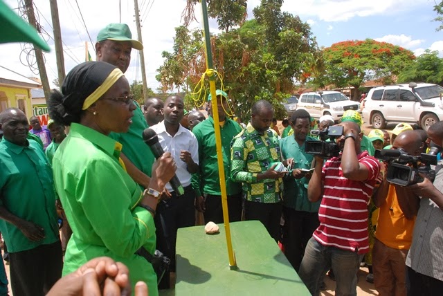 Katibu wa NEC, Siasa na Uhusiano wa Kimataifa, Dk. Asha-Rose Migiro akisalimia baada ya kuzinduliwa shina hilo. Imetayarishwa na theNkoromo Blog