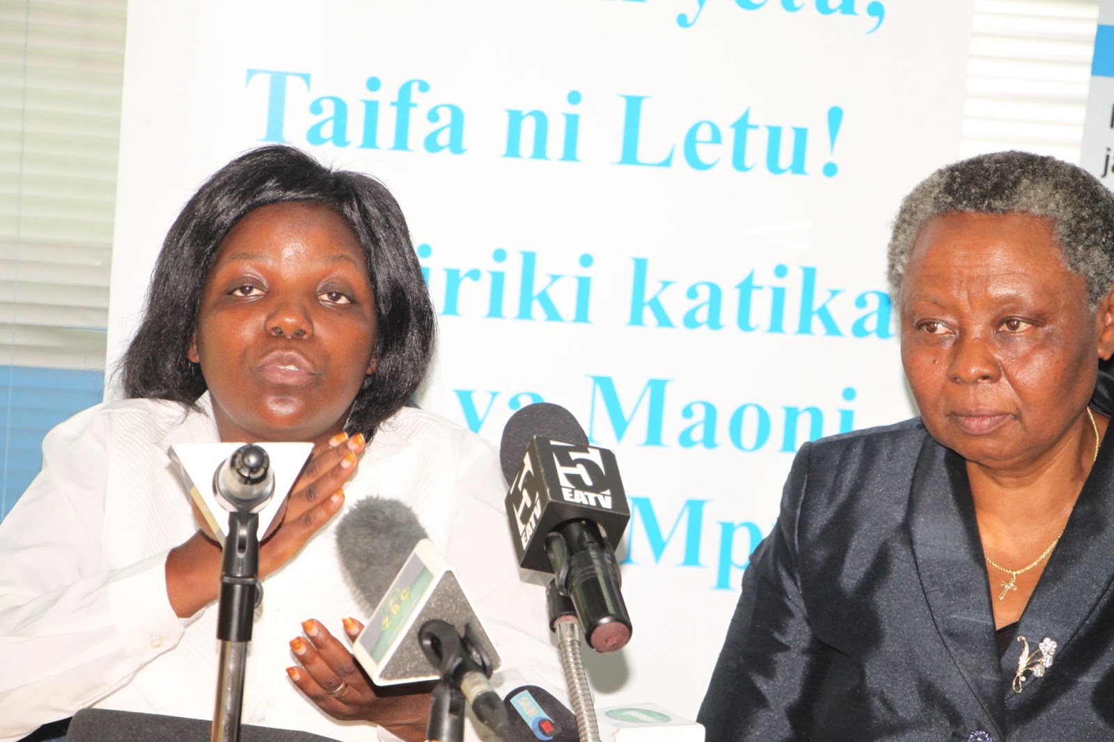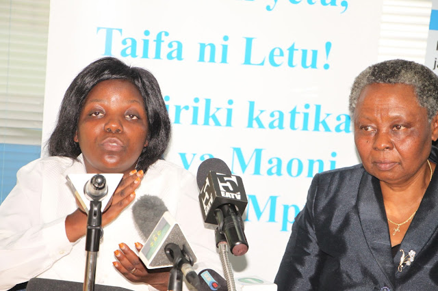 Mkurugenzi wa Uwezeshaji na Uwajibikaji, Imelda Urio (kulia), akisisitiza jambo kwenye mkutano huo.