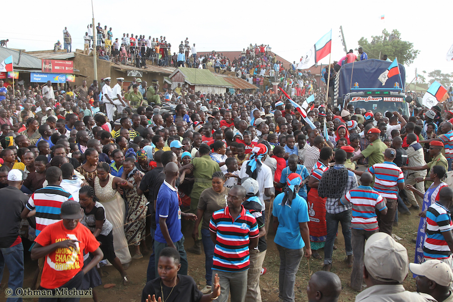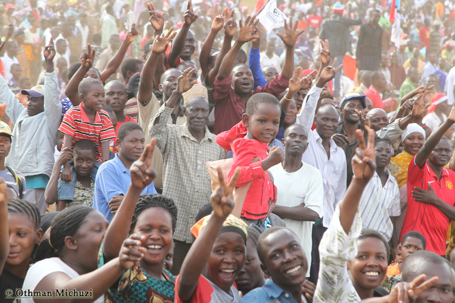 Sehemu ya wananchi wa Mji wa Tarime, walioshiriki Mkutano wa Kampeni za Mgombea Urais wa Chama cha Demokrasia na Maendeleo (CHADEMA) kupitia mwamvuli wa UKAWA, Edward Lowassa, uliofanyika kwenye Uwanja wa Sabasaba, Tarime Mjini, Mkoani Mara Oktoba 10, 2015.