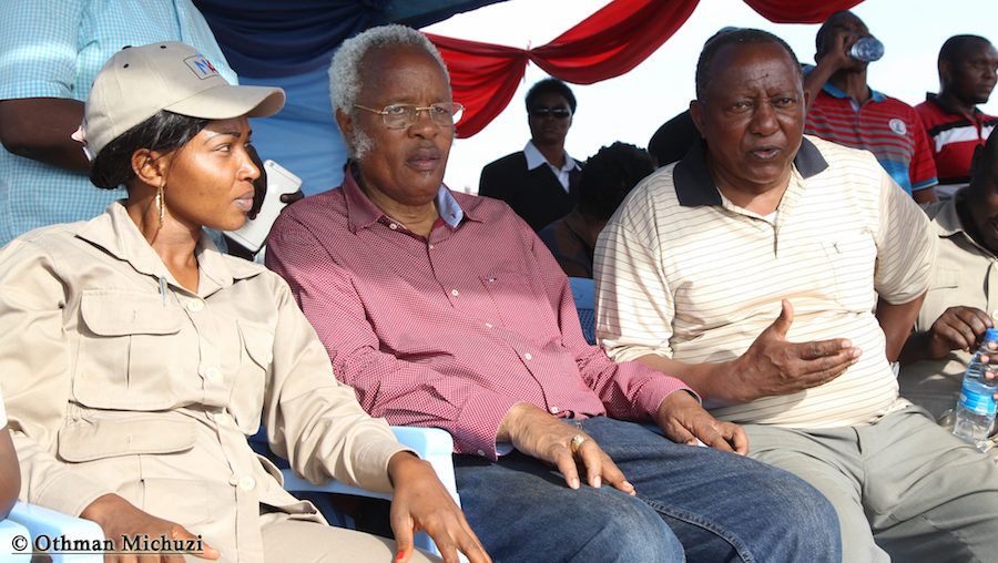 Mgombea Urais wa Chama cha Demokrasia na Maendeleo (CHADEMA) kupitia mwamvuli wa UKAWA, Edward Lowassa na Waziri Mkuu wa Zamani, Fredrick Sumaye, wakiwa pamoja na Mwenyekiti wa CHADEMA Mkoa wa Mara, Vicent Nyerere, Mgombea Ubunge wa Jimbo la Tarime Mjini,  Ester Matimo pamoja na Mgombea Ubunge wa Jimbo la Tarime Vijijini, John Heche, wakati wa Mkutano wa Kampeni, uliofanyika kwenye Uwanja wa Sabasaba, Tarime Mjini, Mkoani Mara Oktoba 10, 2015.