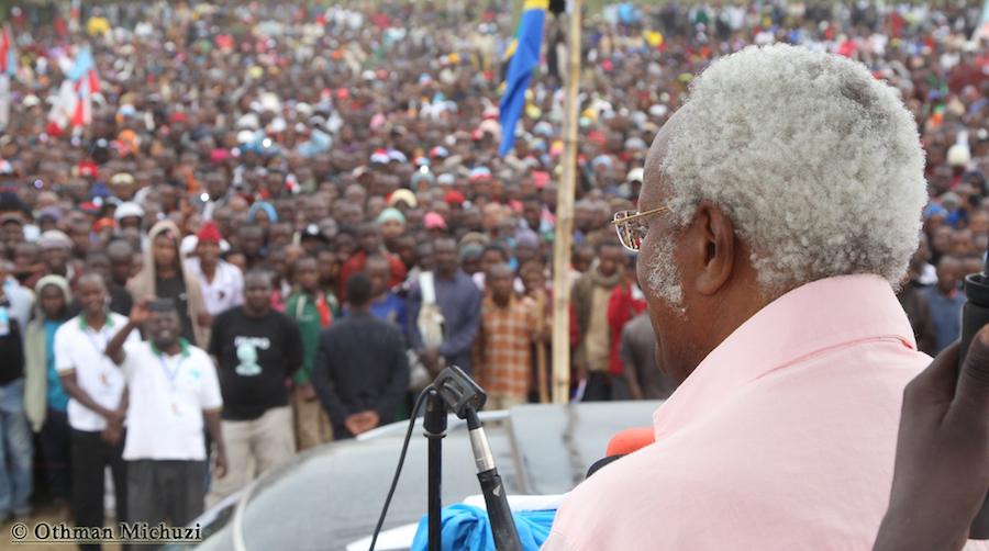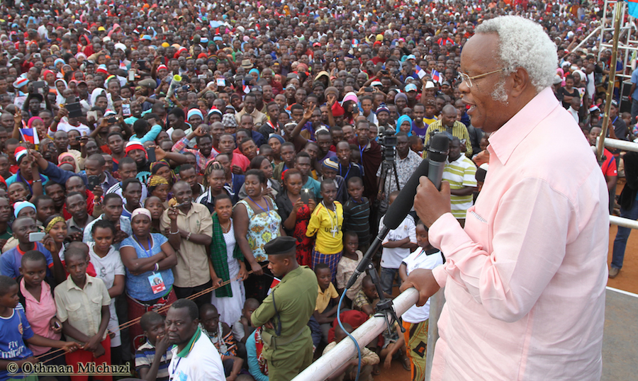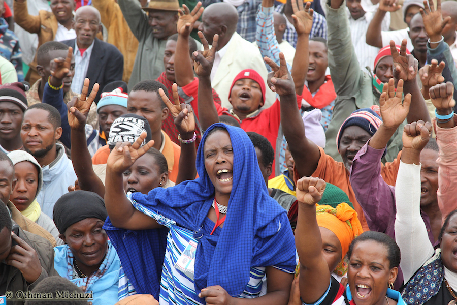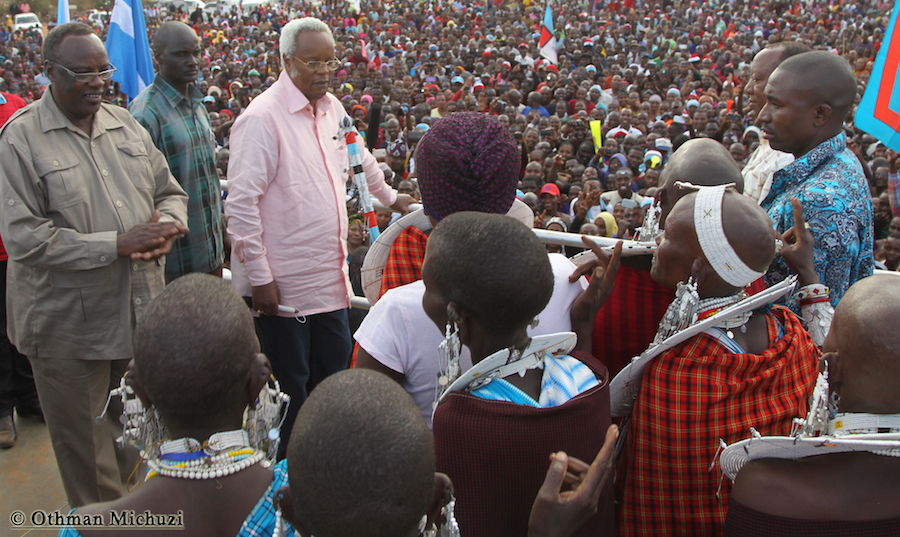 Mgombea Urais wa Chama cha Demokrasia na Maendeleo (CHADEMA) kupitia mwamvuli wa UKAWA, Edward Lowassa, akiwahutubia wananchi wa Mji wa Namanga, Jimbo la Longido, wakati wa Mkutano wa Kampeni za Mgombea Urais wa Chama cha Demokrasia na Maendeleo (CHADEMA) kupitia mwamvuli wa UKAWA, Edward Lowassa, uliofanyika kwenye Uwanja wa Namanga, Jijini Arusha Oktoba 7, 2015.