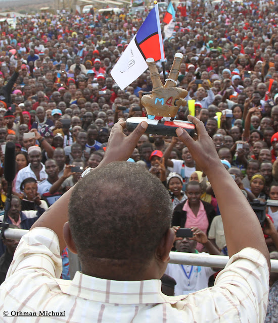 Mgombea Urais wa Chama cha Demokrasia na Maendeleo (CHADEMA) kupitia mwamvuli wa UKAWA, Edward Lowassa, akimnadi Mgombea Ubunge wa Jimbo la Longido kupitia Chadema, Onesmo Ole Nangole, wakati wa Mkutano wa Kampeni za Mgombea Urais wa Chama cha Demokrasia na Maendeleo (CHADEMA) kupitia mwamvuli wa UKAWA, Edward Lowassa, uliofanyika kwenye Uwanja wa Namanga, Jijini Arusha Oktoba 7, 2015.