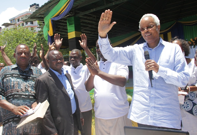 Waziri Mkuu Mstaafu na Mbunge wa Jimbo la Monduli,Mh. Edward Lowassa akicheza muziki sambamba na Wanachama wa VICOBA Tanzania wakati wa uzinduzi wa Maonyesho ya Biashara ya Miaka Kumi yam Wajasilia Mali wa VICOBA tangu kuanzishwa kwakwe,iliyofanyika kwenye viwanja vya Mnazi Mmoja jijini Dar es Salaam.
