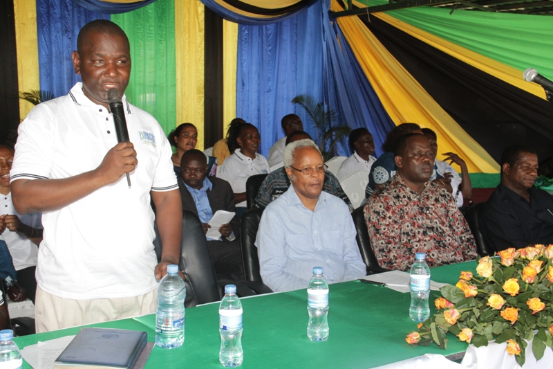 Naibu Waziri wa Kazi na Ajira,Mh. Makongoro Mahanga akizungumza machache kabla ya kumkaribisha Mgeni Rasmi kuzungumza na Wanachama wa VICOBA.