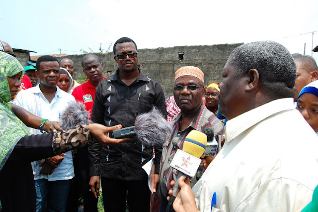 Naibu Waziri wa Ofisi ya Makamu wa Rais Mhe.Luhaga Mpina akiangalia ujenzi huo wakati wa ziara yake kutembelea miradi huo.