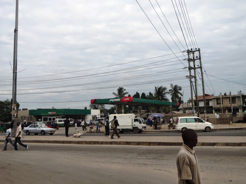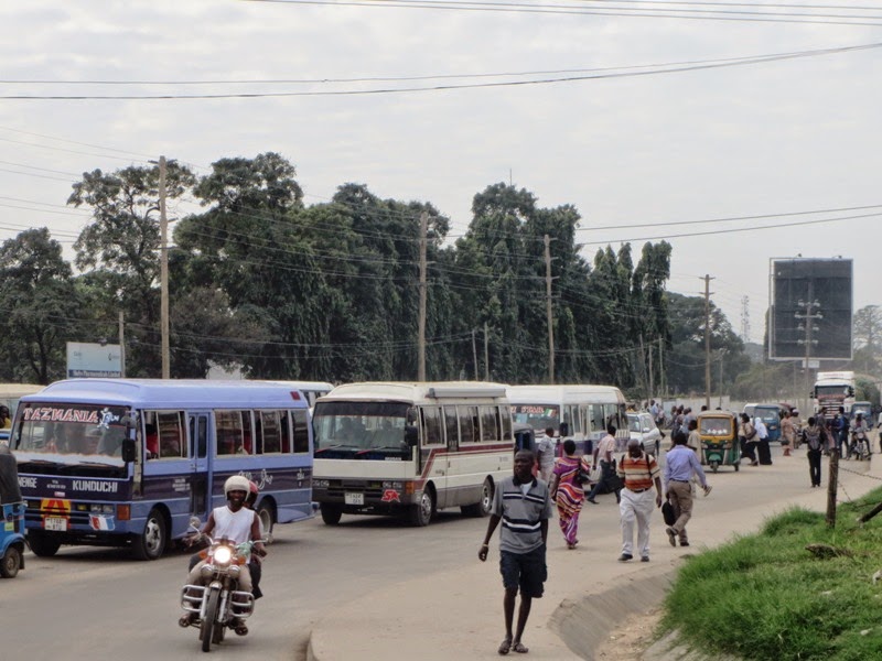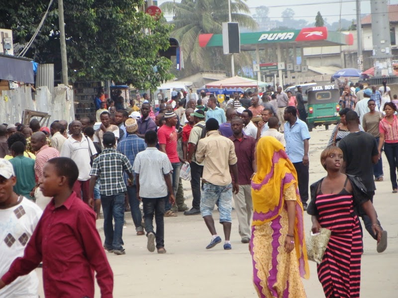Abiria katika eneo la Mwenge wakitaabika na usafiri baada ya mabadiliko hayo. Bajaji ndizo zimegeuka kuwa daladala na ni Tsh 1000 tu kwa mtu mmoja kutoka Makumbushi mpaka Mwenge.