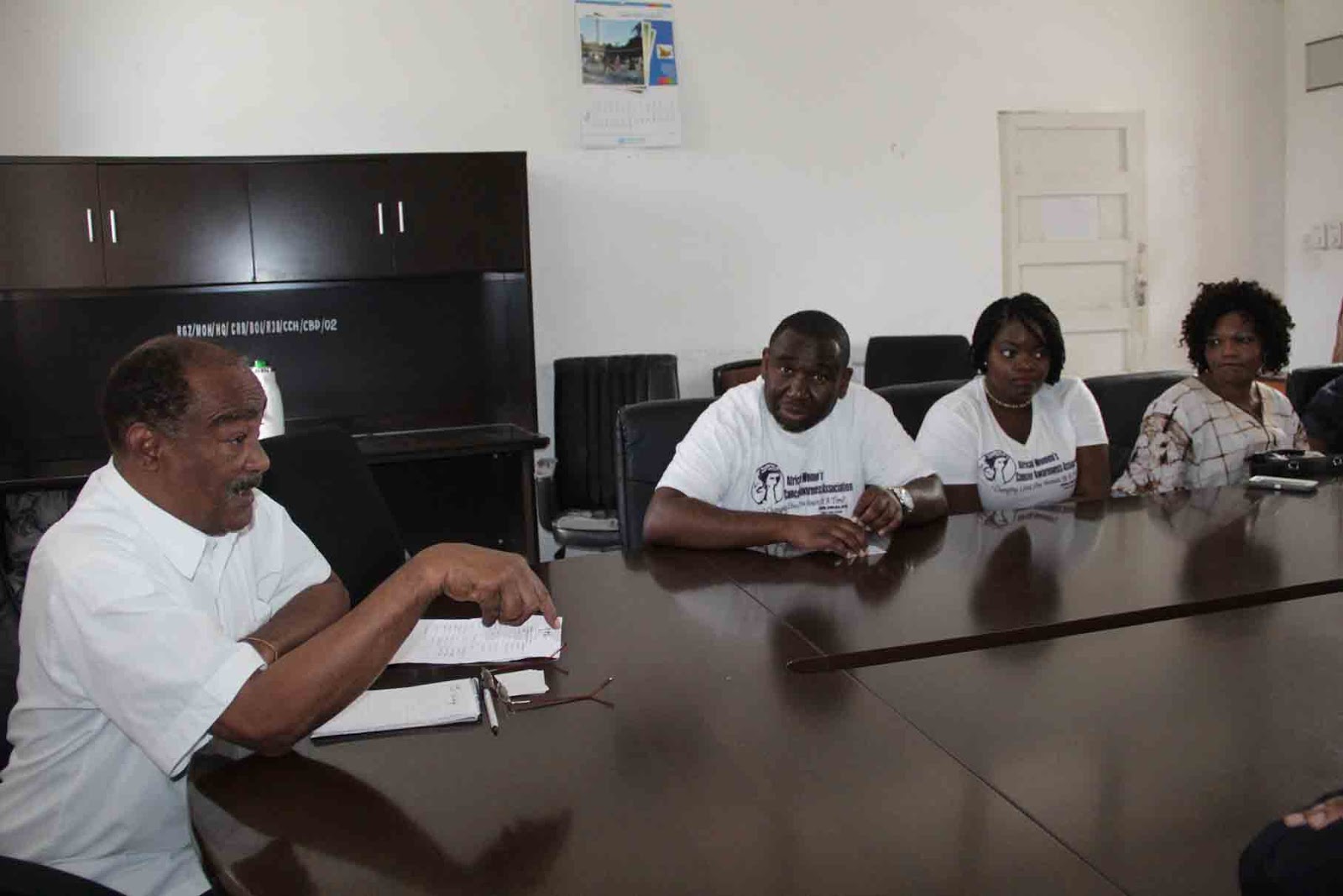 Madktari wa Diaspora kutoka Washington wakimsikiliza Katibu Mkuu Wizara ya Afya Zanzibar walipofika Afisi kwake