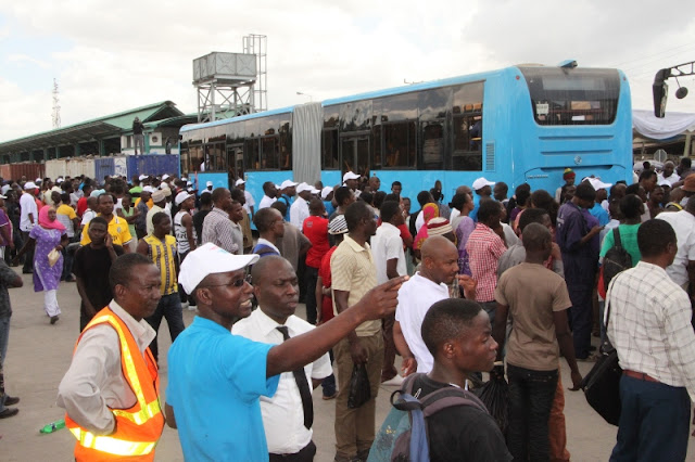 Wanachi na wadau wengine wakiangalia mabasi hayo.