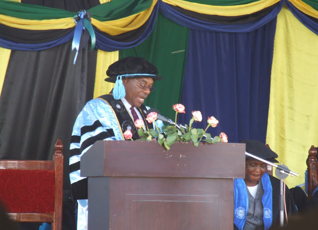 Makamu Mkuu wa Chuo Kikuu Cha Dodoma (UDOM) Prof Idris Kikula akisoma hotuba mbele ya Mkuu Wa Chuo Kikuu Cha Dodoma (UDOM), Benjamin Mkapa (Hayupo Pichani) katika mahafali ya tatu yaliyofanyika tarehe 22 Novemba 2012