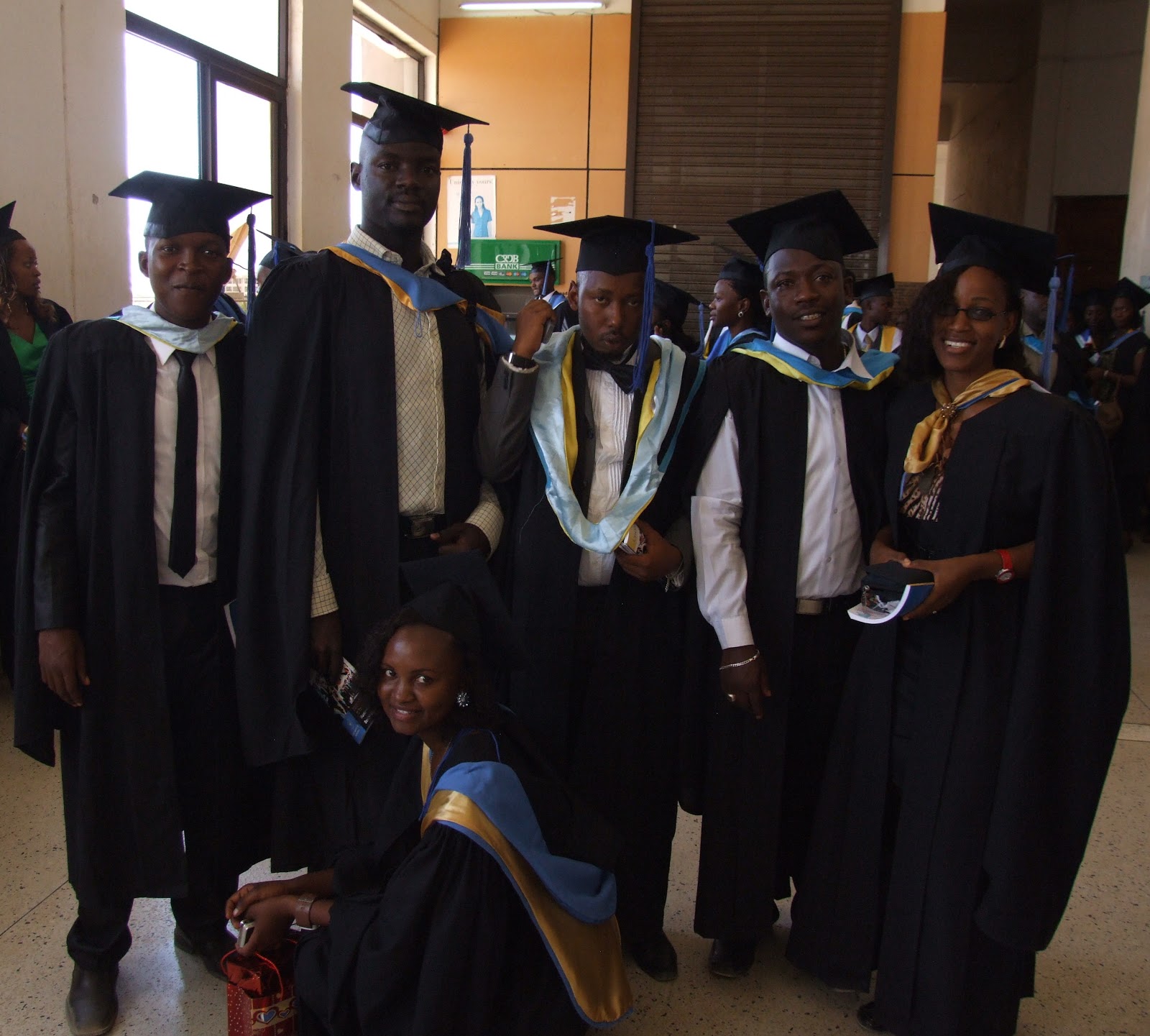 Mmiliki wa Lukaza Blog (Wa Pili Kushoto) akiwa katika picha ya kumbukumbu na baadhi ya wahitimu wa Chuo Kikuu Cha Dodoma (UDOM) katika mahafali ya tatu ya Chuo Kikuu Cha Dodoma (UDOM) yaliyofanyika viwanja vya chimwaga tarehe 22 Novemba 2012.