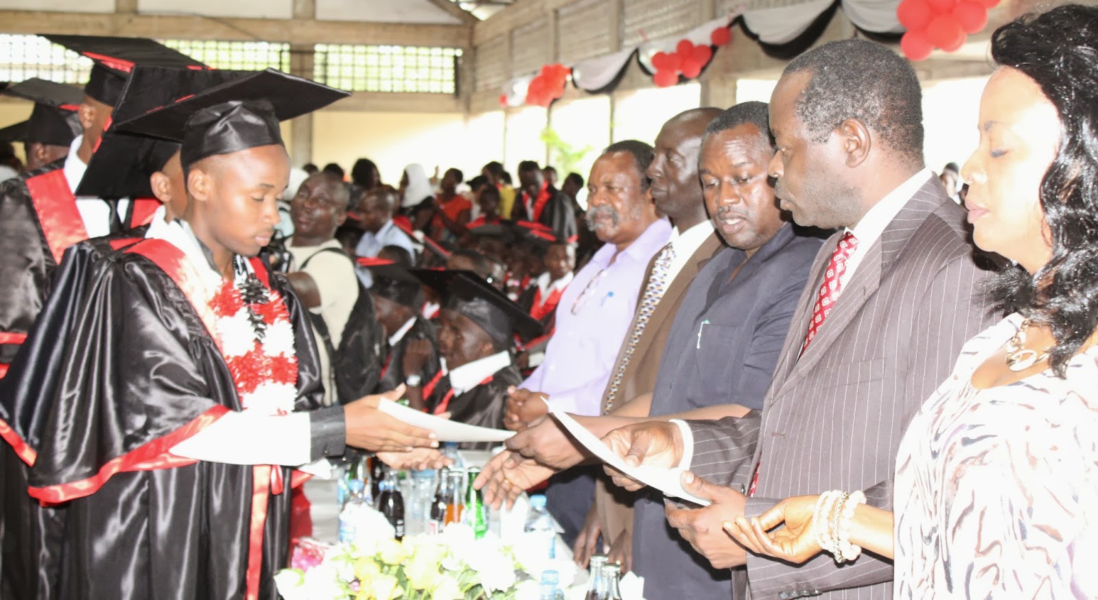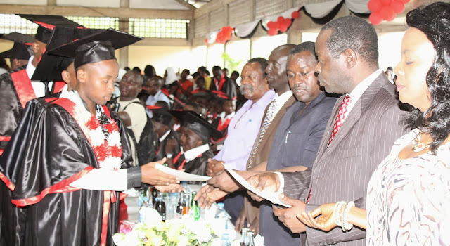 Wanafunzi wanaotarajia Kumaliza elimu ya Kidato cha Nne ya Shule ya Sekondari ya St Anne Marie iliyopo Mbezi Kwa Msuguri wakichukua vyeti kutoka kwa Mgeni rasmi Mh Abdallah Bulembo wakati wa mahafali yao yaliyofanyika jana katika Shule hiyo iliyopo Mbezi kwa Msuguri.